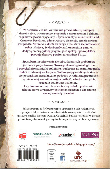 W ostatnim czasie Joannie nie powodziło się najlepiej: choroba ojca, utrata pracy, rozstanie z narzeczonym i dziwne, regularnie powracające sny... Życie w małym miasteczku nad Czarnym Potokiem, gdzie wszyscy się znają, też nie zawsze jest proste. Mimo to kobieta każdego dnia stara się udowodnić sobie i światu, że doskonale nad wszystkim panuje. Jedyną rzeczą, jakiej pragnie, jest spokój. Spokój, który próbuje zburzyć pewien tajemniczy Filip... Sposobem na oderwanie się od codziennych problemów jest nowa pasja Joanny. Tworząc drzewo genealogiczne i przeglądając pamiątki rodzinne, trafia ona na starą fotografię babci urodzonej we Lwowie. To fascynujące odkrycie stanie się początkiem nostalgicznej podróży w rodzinną przeszłość. Będzie w niej wszystko: wojna, miłość, zdrada, szczęście, tragedie i cudowne ocalenia... Czy Joanna odnajdzie w sobie siłę babek i prababek, żeby na nowo uwierzyć w istnienie szczęścia i dać szansę rodzącemu się uczuciu?